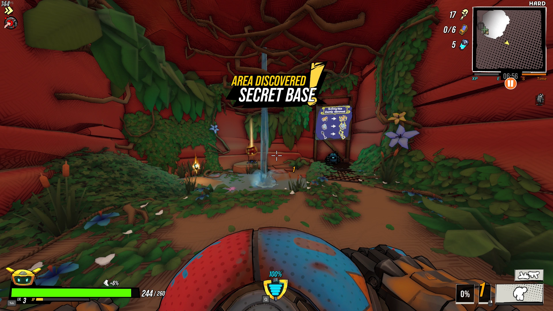 The Hidden Sanctuary is the secret area in this map. Unlike most secret area, this one is already openly available from the start. The Javelin (which unlocks the Ranger Class), a Data Log and Johnny Waterfall can be found here. At first, he will ask for his lost Swim Trunks, but after having received them from the player, starting the next run, he will offer a selection of two fantastic Items of which the player may choose one for free.